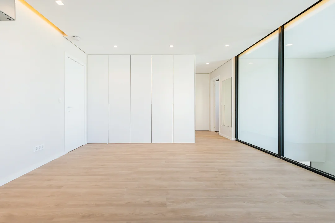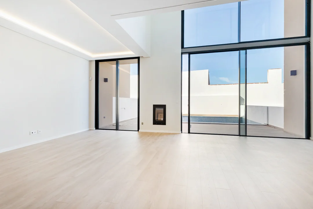 No 1 piso poderá encontrar a sala, apresentando um pé direito de 5 metros, em openspace com a cozinha completamente equipada, com acesso direto á piscina e jardim privativo. Neste piso encontra também uma suite e casa de banho social.